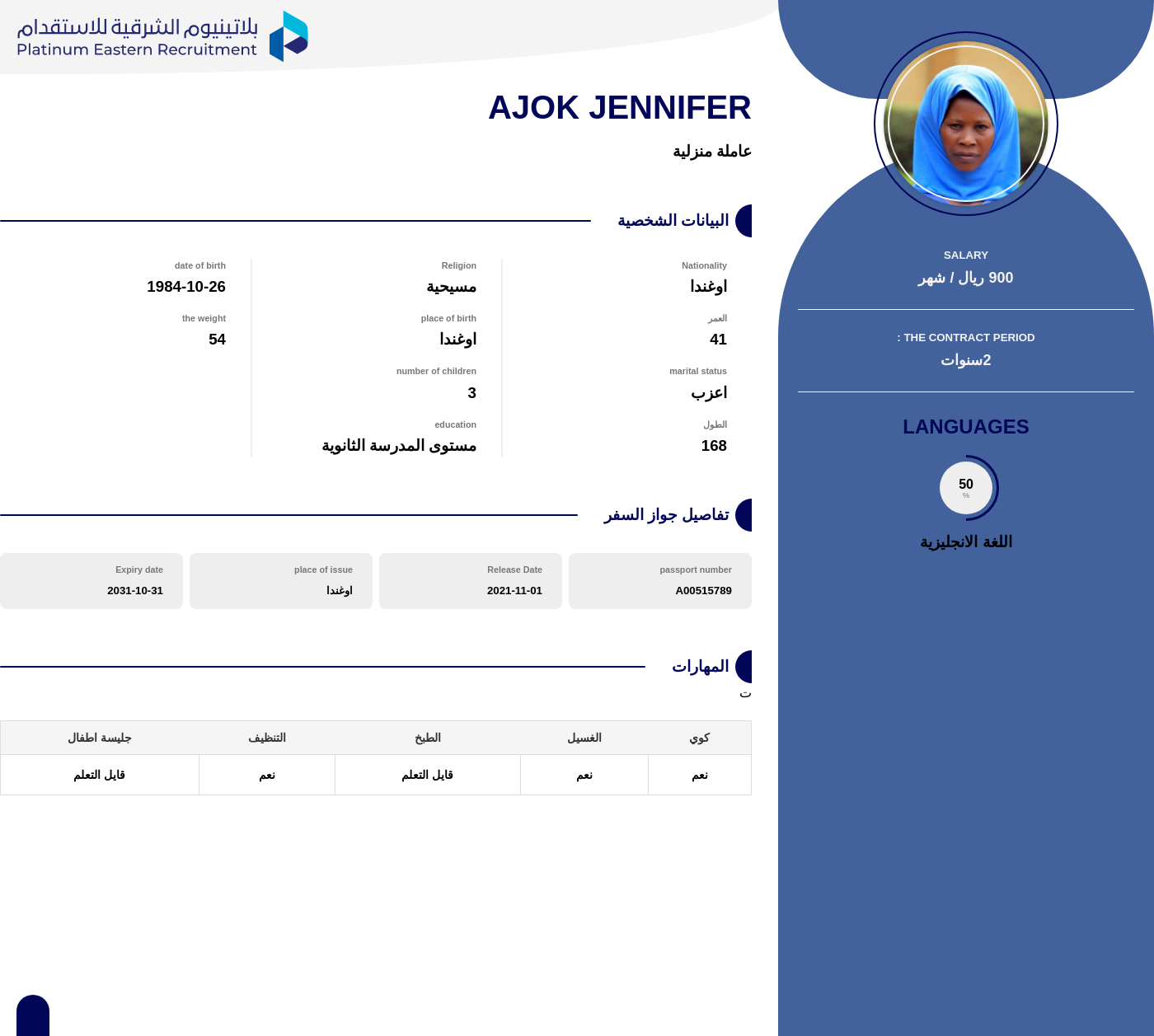 | الاسم: | AJOK JENNIFER |